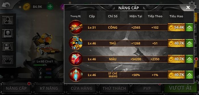 Hơn nữa, mỗi nhân vật sở hữu bảng nâng cấp kỹ năng độc đáo, tạo cho người chơi quyền lựa và hình thành chiến thuật nâng cấp kỹ năng theo ý muốn.