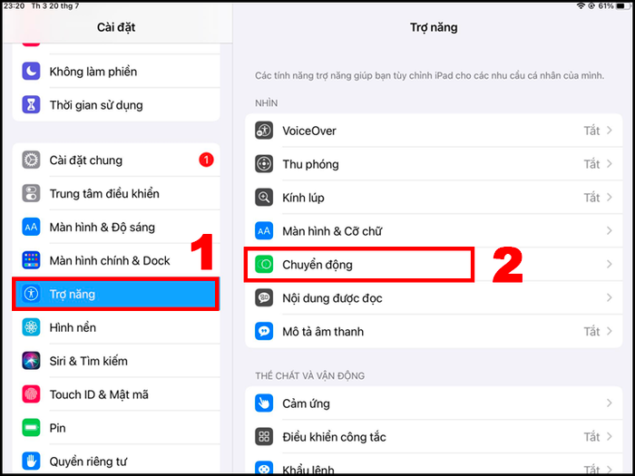 - Bước 1: Mở Cài đặt > Chọn Tiện ích > Ấn vào Rung.