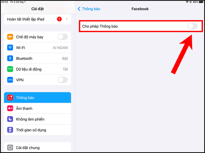 - Bước 2: Khi vào ứng dụng, bạn chỉ cần gạt tắt Cho phép Thông báo.
