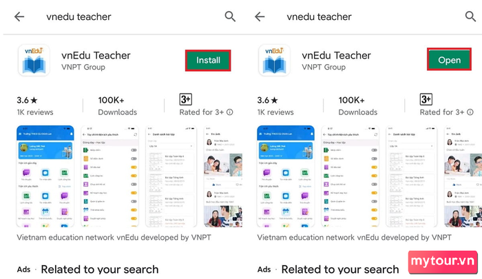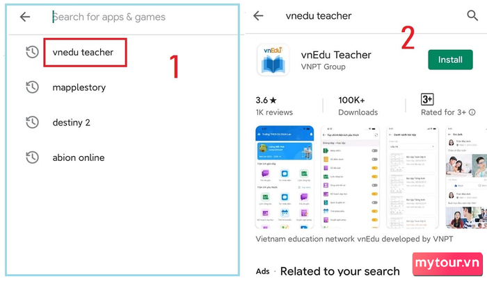 Bước 1: Truy cập vào Google Play và tìm kiếm ứng dụng “vnEdu Teacher”.