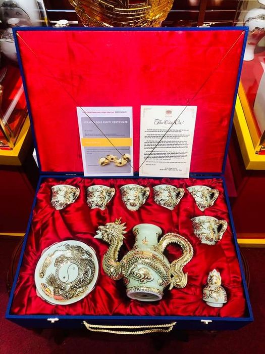 Đến showroom Gốm Bát Tràng tại Hải Phòng, bạn có cơ hội chiêm ngưỡng tuyệt phẩm Sứ Vẽ Vàng - được sử dụng làm quà tặng trong hội nghị quốc tế APEC.