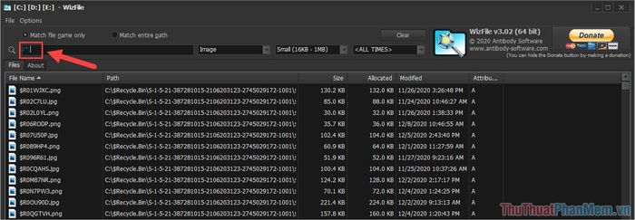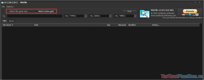 Bước 5: Sử dụng 03 bộ lọc trên WizFile để cải thiện tìm kiếm: