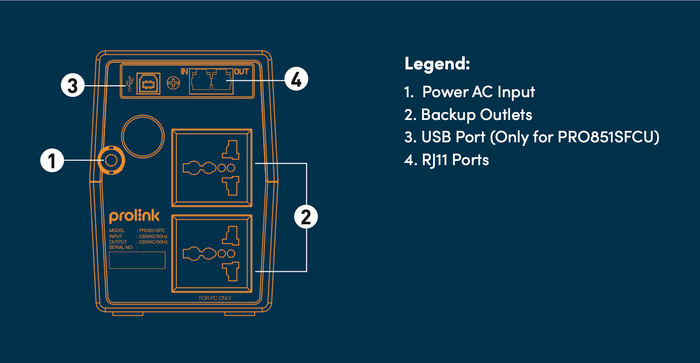 Thông số kỹ thuật của UPS Prolink PRO851SFCU