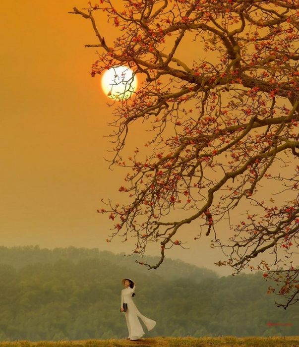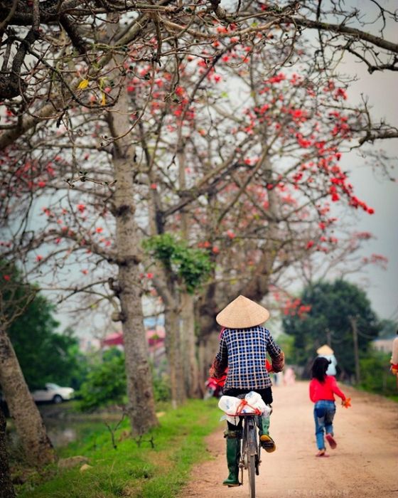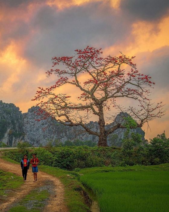 Hoa gạo đỏ rực, tô điểm sắc đẹp khắp nơi. Ảnh: @dreamer.meooo