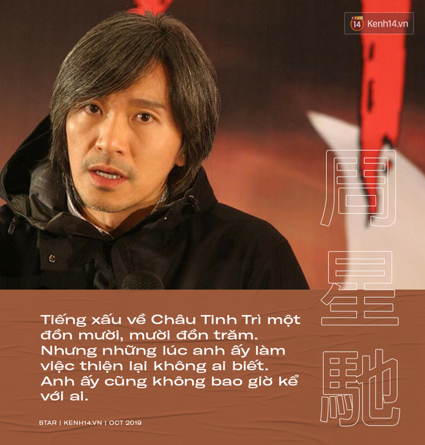 Không hề khoe khoang, cũng không lập quỹ từ thiện mang tên mình, ông chỉ dùng cách riêng mà ông thấy phù hợp để đóng góp cho xã hội: 'Tiếng xấu về Châu Tinh Trì một đồn mười, mười đồn trăm. Nhưng những lúc anh ấy làm việc thiện lại không ai biết. Anh ấy cũng không bao giờ kể với ai'.