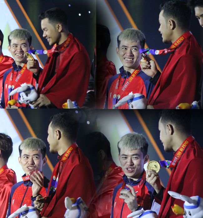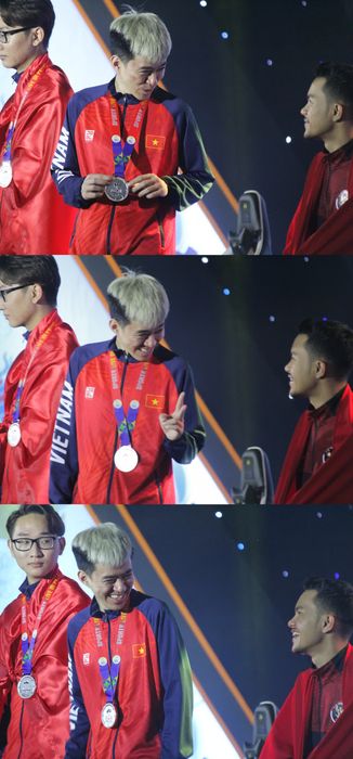 Các thành viên của đội Vietnam 2 thu hút sự chú ý khi ngắm nhìn tấm huy chương trong lần đầu tham dự SEA Games. Thậm chí, Pikang còn thử độ cứng của huy chương một cách công khai.