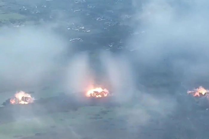 Nga đã tiết lộ những đoạn video cho thấy sức phá hủy đáng sợ của các hệ thống pháo phản lực phóng loạt (MLRS) TOS-1A khi tấn công vào các mục tiêu ở Ukraine. Các vụ nổ đã xảy ra gần Novomykhailivka và Lyman, đều thuộc vùng Donetsk ở Donbas. Video cho thấy sóng xung kích khổng lồ được tạo ra bởi đạn nhiệt áp (thermobaric) kèm theo nhiều vụ nổ xảy ra cùng lúc.