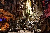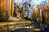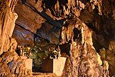 Để đến cửa hang Phượng Hoàng, bạn cần đi bộ khoảng 700-800m trên con đường lát đá và mất khoảng 45 phút leo núi. Hang nằm ở lưng chừng núi, có chu vi 380 m, chiều cao từ trần đến đáy hang khoảng trên 70m, với một hồ nước lạnh trong vắt ở đáy. Hang được chia thành 3 tầng: tầng trên cùng là hang Dơi, tầng giữa gọi là hang Sáng, và tầng dưới cùng là hang Tối. Hang Sáng rộng rãi, ánh sáng từ ba cửa hang chính chiếu vào những nhũ đá và thạch nhũ tạo nên cảnh sắc lung linh, huyền bí. Những nhũ đá có nhiều hình dạng kỳ lạ, từ hình hổ, báo, voi đến cây bút, người vũ nữ, thậm chí có cả thạch nhũ hình Linga (dương vật đá) cao khoảng 10m, đường kính đủ để hai người ôm, với vòm hang cách đáy khoảng 30-40m.