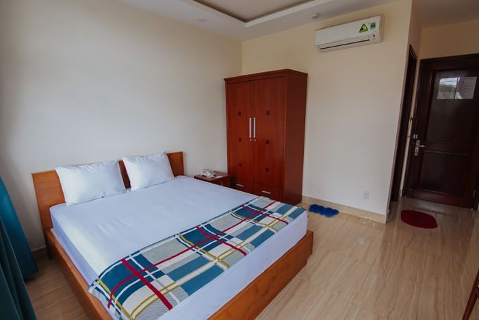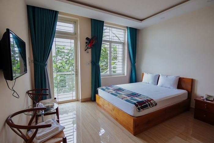 Trước lối vào khách sạn, có nhiều cây xanh, đặc biệt là hoa lộc vừng đang nở rộ với màu đỏ tươi. Nhân viên thân thiện và nhiệt tình. Hy vọng khách sạn sẽ phát triển thêm các dịch vụ để thu hút nhiều cảm tình hơn!”