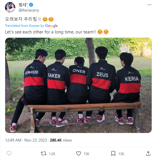 Bất ngờ xảy ra khi kênh YouTube của T1 phát hành đoạn clip (12h10), chỉ sau đó vài phút, Zeus đăng một story với bức ảnh của mình trong trang phục của T1, có thể là trong quá trình quay MV cho trận chung kết CKTG gần đây. Trang Twitter cá nhân của Keria cũng đăng ảnh cả đội T1 ngồi cạnh nhau, làm cho người hâm mộ cảm thấy bớt lo lắng.