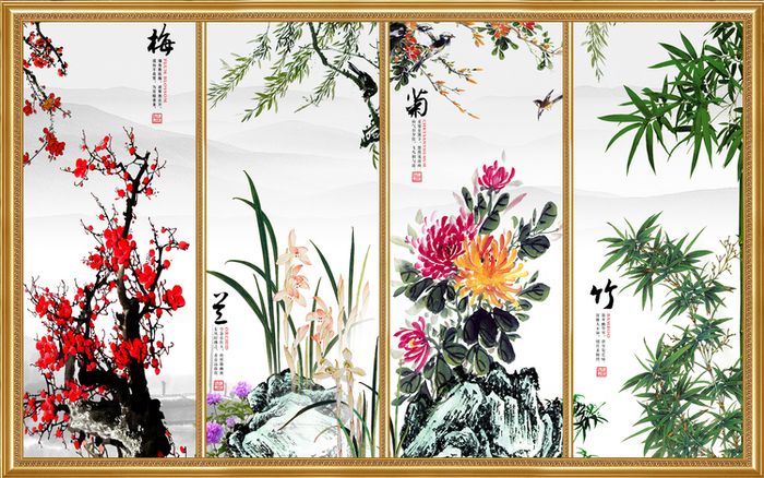 Tranh Tết truyền thống: Tùng Cúc Trúc Mai tượng trưng cho sự thịnh vượng