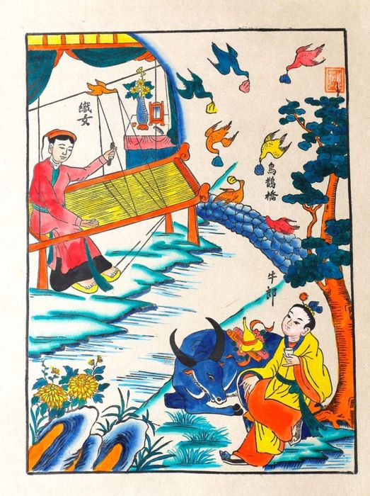 Tranh Tết truyền thống: Ngưu Lang Chức Nữ tượng trưng cho tình cảm và hạnh phúc gia đình