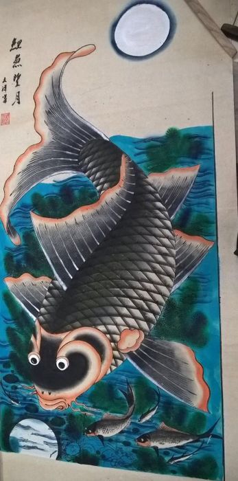 Tranh Tết Hàng Trống: Lý ngư vọng nguyệt đẹp lung linh