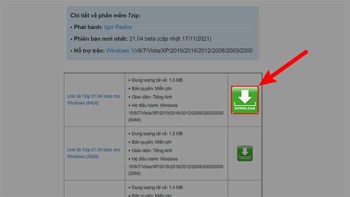 Bước 1: Tải xuống bộ cài đặt 7-Zip từ phía trên trang web.