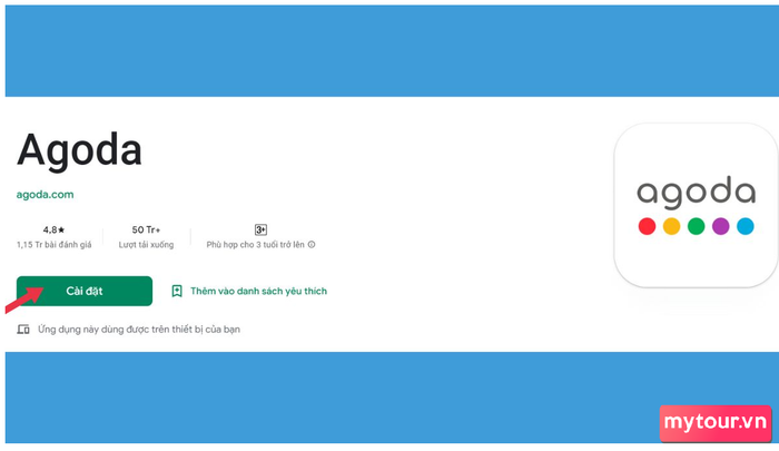 Bước 2: Nhấn Cài đặt để tải Agoda về máy.