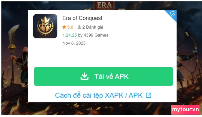 Bước 1: Sử dụng trình duyệt web để tìm kiếm Kỷ nguyên chinh phục (truy cập nhanh tại https://m.apkpure.com/vn/era-of-conquest/com.eoc.an.ssjjglobal) và tải xuống.