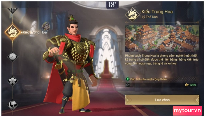 Bước 1: Khi bắt đầu, thách thức người chơi Era of Conquest với việc lựa chọn nền văn minh, quyết định quan trọng không thể thay đổi sau này. Mỗi nền văn minh mang lại ưu điểm về kinh tế và đặc sắc về tướng, đòi hỏi người chơi cân nhắc kỹ lưỡng theo chiến lược riêng.