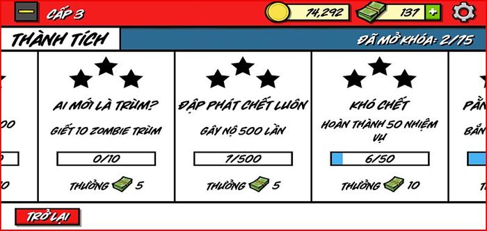 Hệ thống thành tựu cực kỳ đa dạng, bạn sẽ nhận tiền thưởng để nâng cấp vũ khí và sức mạnh khi hoàn thành.