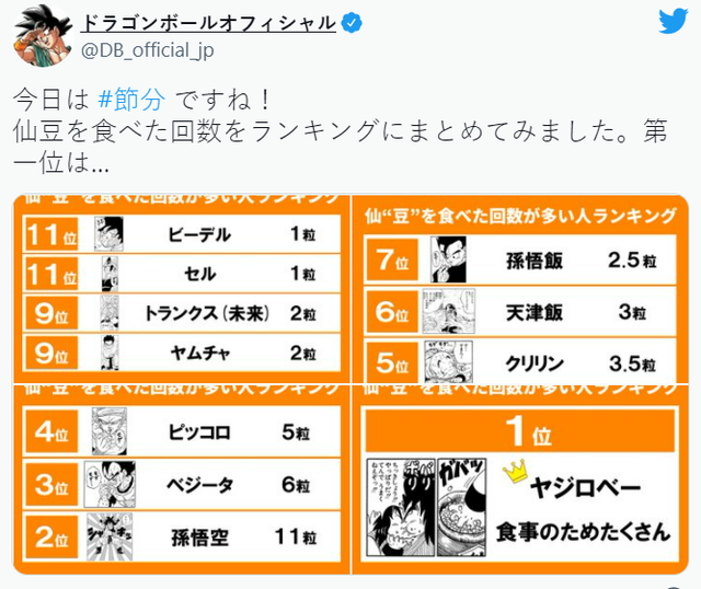 Mới đây, Dragon Ball đã công bố bảng thống kê chính thức về người ăn nhiều đậu Senzu nhất trong toàn bộ series, với một số kết quả khiến fan vô cùng ngạc nhiên. Thông tin này được phát hành qua tài khoản Twitter chính thức của Dragon Ball.