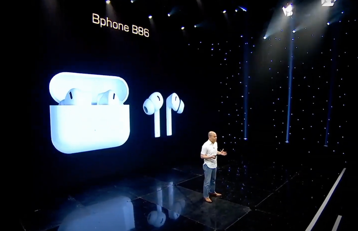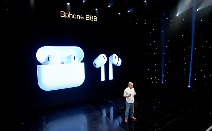 Sau sự kiện ra mắt Bphone B86, CEO Quảng đã tiết lộ về dự án phát triển tai nghe không dây đầu tiên của BKAV. Hình ảnh của chiếc tai nghe trên màn hình rất giống với AirPods Pro nhưng mang tên là AirB. Dự kiến, sản phẩm sẽ có hai phiên bản, trong đó có phiên bản cao cấp. BKAV dự kiến sẽ ra mắt tai nghe trong vài tháng tới, nhưng vẫn còn nhiều chi tiết chưa được tiết lộ.