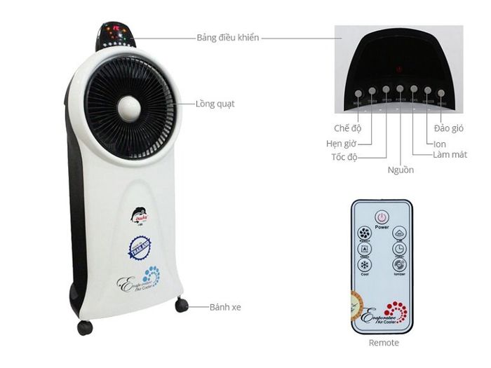 - Một bộ bánh xe ở dưới cùng của quạt giúp cho việc di chuyển trở nên nhanh chóng và đơn giản.