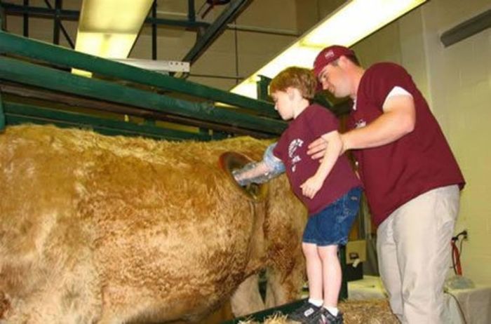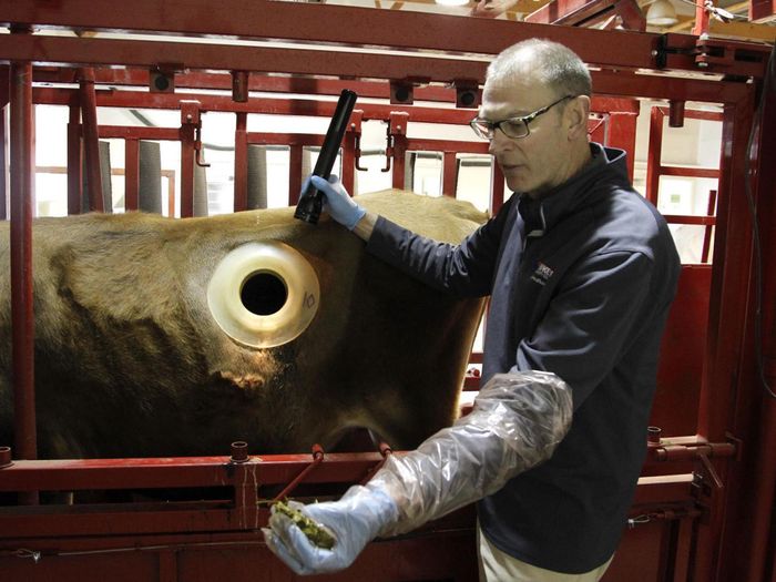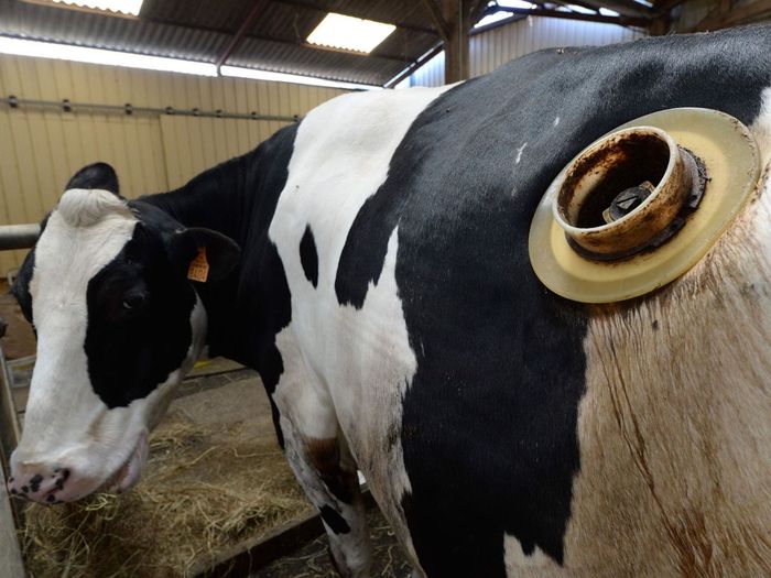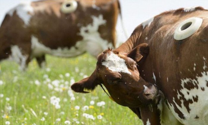 Khi bò gặp vấn đề về tiêu hoá, các lỗ trên thân bò có thể được sử dụng để cung cấp hệ vi sinh vật cho bò bị ốm.