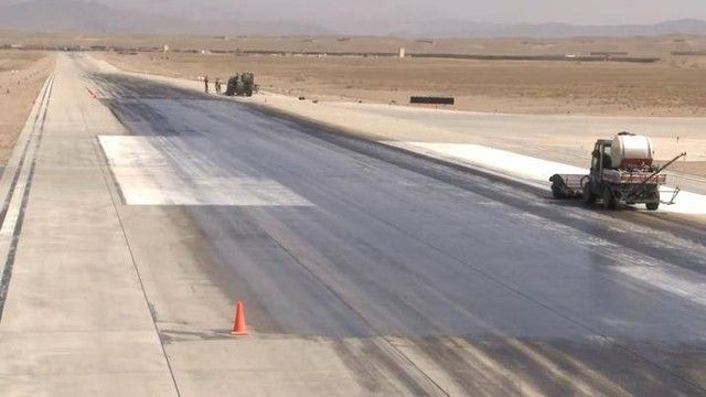 Những dấu vết đen trên đường băng là cao su từ lốp máy bay. Khi máy bay hạ cánh, lốp tạo nhiệt độ cao, làm cao su dính vào đường băng, dần dần hình thành những dấu vết giống như lốp xe ô tô.