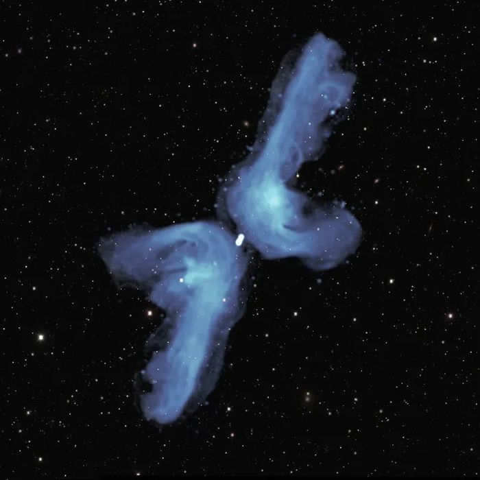 Thiên hà PKS 2014-55 được chụp bằng kính viễn vọng không dây MeerKAT ở Nam Phi. Hình ảnh này được chụp từ cách Trái Đất 800 triệu năm ánh sáng, cung cấp thông tin chi tiết về hai dải sóng vô tuyến mạnh mẽ, mỗi dải dài bằng mười thiên hà, được hình thành dưới tác động của một lỗ đen nhị phân ở trung tâm.