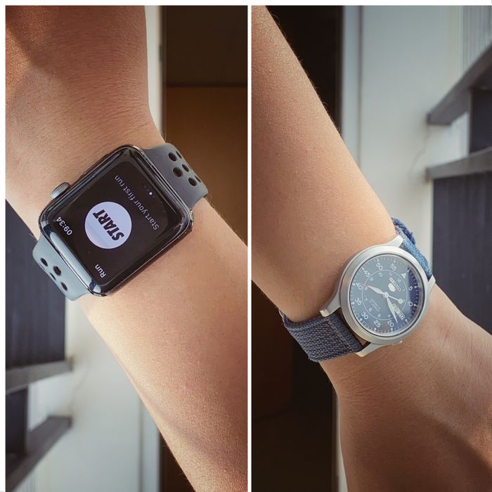 Trước khi chạm tay vào Apple Watch, đồng hồ cơ đồng hành của mình là chiếc Seiko 5 - một người bạn từ thời đại học. Nó mang đến sự sang trọng với máy cơ lộ thiên và thương hiệu Seiko danh tiếng. Tuy nhiên, vấn đề với chất lượng dây và kích thước nhỏ khiến mình suy nghĩ về sự thay đổi. Cuối cùng, quyết định chuyển sang Apple Watch Series 3 để trải nghiệm thế giới Smartwatch.
