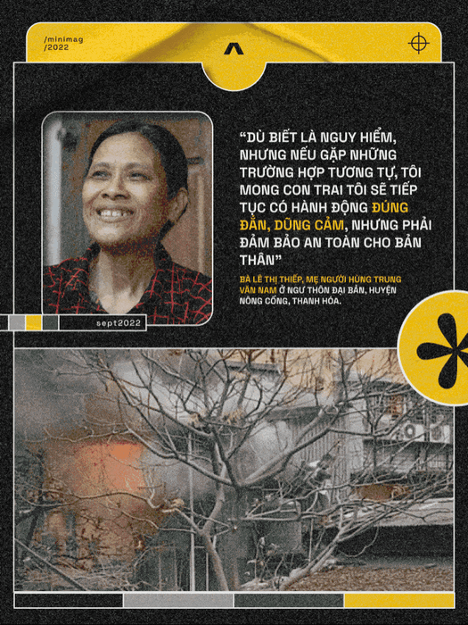 Một ngày đầu năm 2022, bà Lê Thị Thiếp, 58 tuổi, từ làng Ngư Thôn Đại Bản, huyện Nông Cống, Thanh Hóa đi làm đồng, bất ngờ có người hàng xóm lao đến báo tin: 'Bà Thiếp ơi, thằng Nam vừa cứu được cháu bé trong đám cháy”.