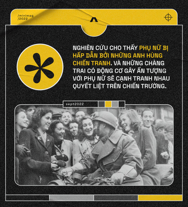 Trong một nghiên cứu được đăng trên Tạp chí Tiến hóa và Hành vi Con người, một nhóm các nhà tâm lý học ở Châu Âu cũng phát hiện ra rằng nam giới thể hiện lòng dũng cảm của họ trong chiến tranh nhằm mục đích gây ấn tượng với phụ nữ có thể là bạn tình tiềm năng của họ.
