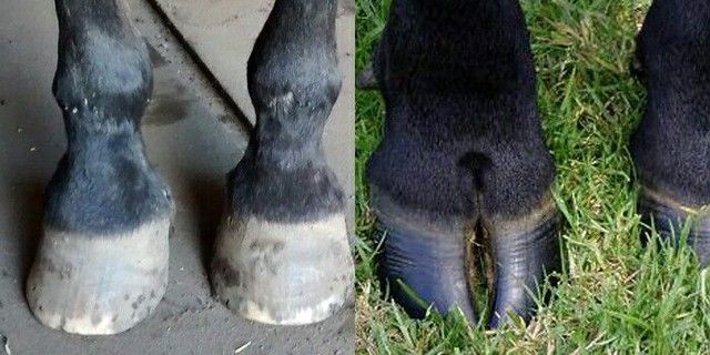 Ngựa là loài động vật có móng guốc lẻ, với một ngón chân phát triển tốt, trong khi gia súc là động vật guốc chẵn, tức là có hai ngón chân phát triển. Các ngón chân của gia súc giúp phân tán trọng lượng đều hơn khi di chuyển trên đất mềm, phù hợp với công việc nông nghiệp và đồng cỏ. Điều này giúp gia súc ít bị mài mòn móng và không cần bảo vệ thêm như ngựa.
