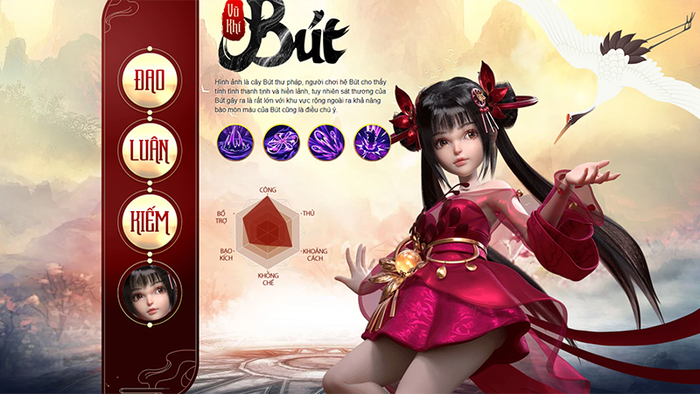 - Vũ Dực: Kỹ năng tăng chỉ số như máu, năng lượng, sát thương vật lý...