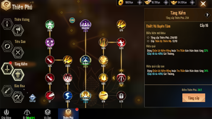 - Thiên Phú: Kỹ năng tăng % chỉ số, tương tự Vũ Dực nhưng tăng theo tỷ lệ phần trăm.