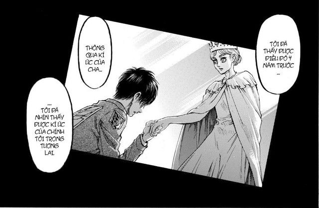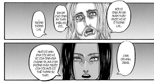 Chính xác, quan trọng ở đây vẫn là việc Eren sẽ không bao giờ thực hiện được điều đó nếu không chạm vào Zeke ngay tại Shingashina. Để tạo ra tương lai mà anh ta đã thấy, Eren phải chuẩn bị mọi thứ để diễn biến như anh ấy muốn.