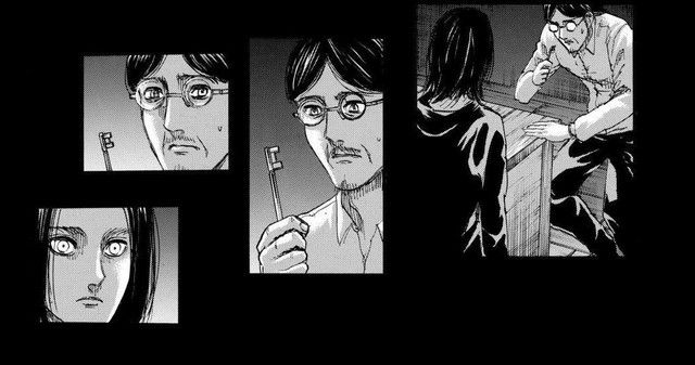 Khi Grisha nhìn về phía Eren, ông chỉ nhìn theo hướng mà Eren nhìn, không biết Eren trông như thế nào. Nhưng khi Grisha nhìn Zeke, Eren luôn ở phía sau cả hai, để Grisha có thể nhìn thấy Zeke rõ ràng nhất. Điều này thực sự đáng sợ, Grisha sống với hai phần kí ức, và chỉ nhìn thấy những gì Eren chọn để cho ông thấy.