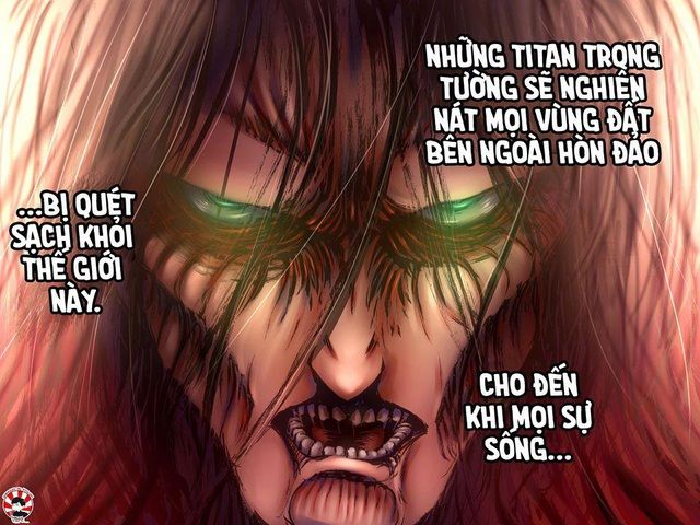 Điểm khác biệt duy nhất giữa cậu bé Eren 9 tuổi ngày ấy và Eren hiện tại, đó là trong tay cậu không phải là một lưỡi dao bé nhỏ, cũng như kẻ thù của cậu không phải là 2 tên bắt cóc và sát hại gia đình của Mikasa. Kẻ thù trong mắt của Eren hiện tại là tất cả nhân loại bên kia hòn đảo Paradis và trong tay cậu giờ đây là hàng triệu Titan Khổng Lồ, chuẩn bị thực hiện tội ác dã man và độc ác nhất trong lịch sử nhân loại.