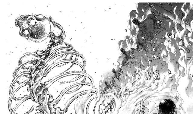 Bất chấp việc bị bắn đầu bằng súng, sức mạnh của Thủy Tổ đã tái tạo Eren thành một Titan hoàn toàn mới, khủng khiếp.