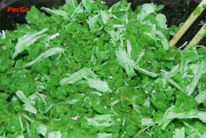 - Lấy cốm ra tô, thêm đường và dừa nạo, trộn đều. Thêm đậu xanh đã nghiền, trộn đều là có thể thưởng thức.