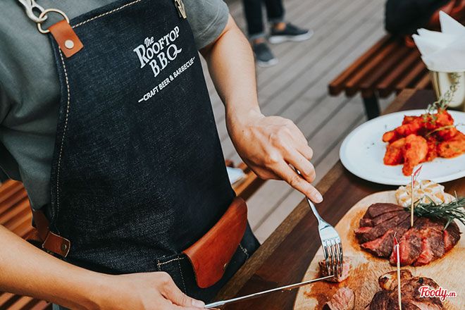 Bên cạnh không gian, điểm đặc biệt thu hút khách hàng chính là menu đa dạng chỉ có tại The Rooftop BBQ. Các món ăn nổi bật của The Rooftop BBQ bao gồm các món nướng theo phong cách “Charcoal Grill” như Pork Back RIB, Grilled Salmon, Smoky Chicken… đến các món bò như RIB Eye, Striploin, Tenderloin, Oyster Blade… Hãy cùng khám phá và thưởng thức một số món ăn tuyệt vời này!