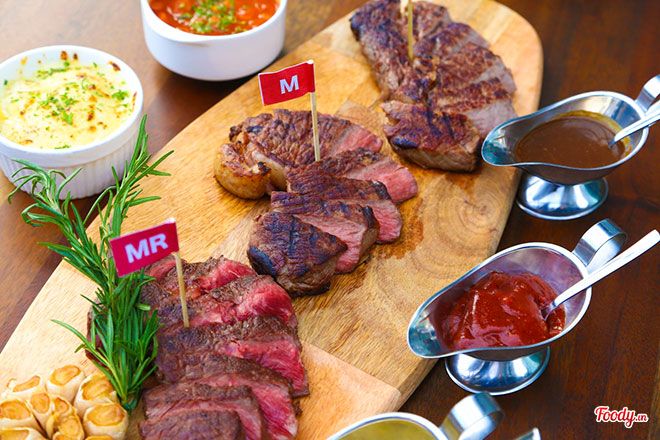 Combo Đặc Biệt C - Special Combo C (Lõi vai bò Mỹ/ Thăn ngoại bò Mỹ/ Thăn vai bò Mỹ với 3 loại sốt và 2 món ăn kèm)Bò được nhập khẩu từ Mỹ nên đảm bảo chất lượng cao. Thịt bò được nướng ở nhiều mức độ khác nhau như chín, chín vừa, tái… tuỳ thuộc vào khẩu vị của bạn. Thịt bò mềm thơm và vì được nướng trên than củi nên vẫn giữ được độ tươi ngon của nguyên liệu.