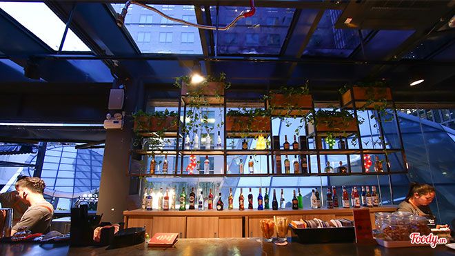 Quầy bar được thiết kế để khách hàng có thể vừa thưởng thức bữa ăn vừa theo dõi bartender pha chế các loại cocktail hấp dẫn.