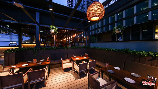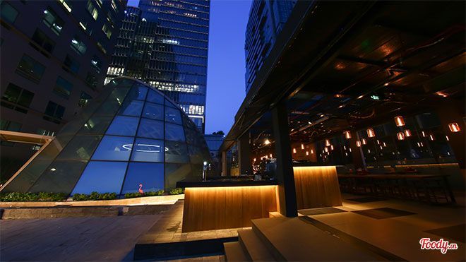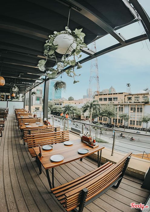 Thiết kế nội thấtBên trong The Rooftop sẽ khiến bạn nhớ đến các nhà hàng Âu cao cấp với phong cách hiện đại và tinh tế. Sự sắp xếp thông minh của nội thất mang lại sự thoải mái tối đa cho khách hàng. Đặc biệt, bàn lớn ở trung tâm rất phù hợp cho các cuộc họp đông người.