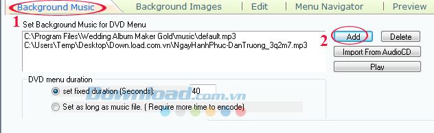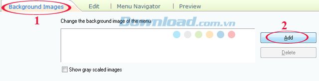 Tại mục Background Images: Bạn có thể thêm hình nền vào Menu của Album bằng cách nhấn Add và chọn thư mục chứa ảnh.