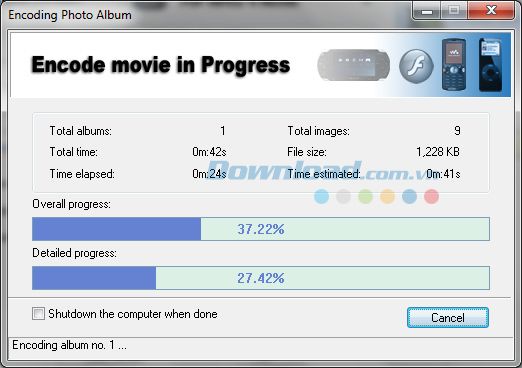 Bước 7: Cửa sổ Encoding Photo Album xuất hiện, bạn hãy đợi một lát để tiến trình hoàn thành.