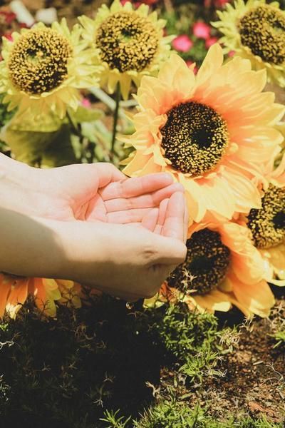 Dù đã che mặt nhưng nếu vẫn chưa đủ tự tin, chỉ cần chụp đôi tay là đủ rồi. Hoa xinh lấp ló ở phía sau, khẽ đưa tay ra hứng nắng vàng ươm hoặc đơn giản là bắt lấy vẻ chói lòa của hoa hướng dương, tạo ngay một bức ảnh đẹp cho mạng xã hội. Bạn có thể tìm hiểu thêm về cách tạo dáng với hoa qua Beauties Việt Nam, họ có nhiều gợi ý hay đấy.