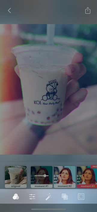 Bước 5: Khi bạn đã điều chỉnh xong các hiệu ứng chuyển động, nhấn mũi tên ở góc trên bên phải để sang phần tiếp theo và chỉnh sửa thêm 1 số chi tiết ở thanh menu như: bộ lọc ảnh (filters), tăng/giảm độ sáng/tối, độ tương phản, độ bão hoà, thêm khung ảnh, hoặc các hiệu ứng màu cho vật thể.