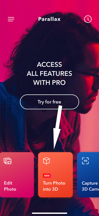 - Mở ứng dụng Parallax và chọn Turn Photo into 3D.