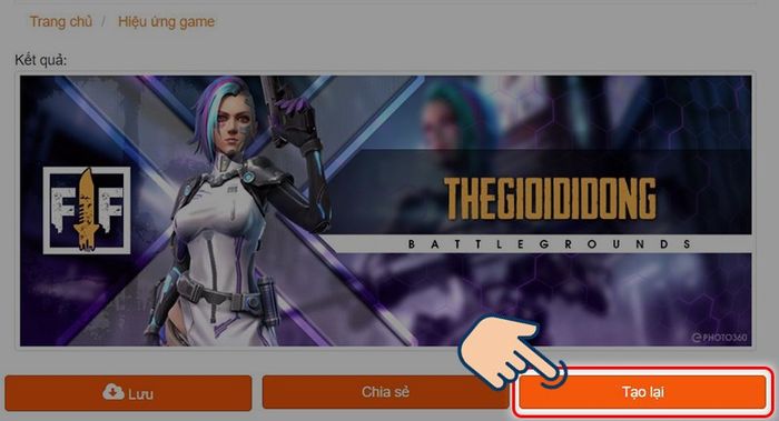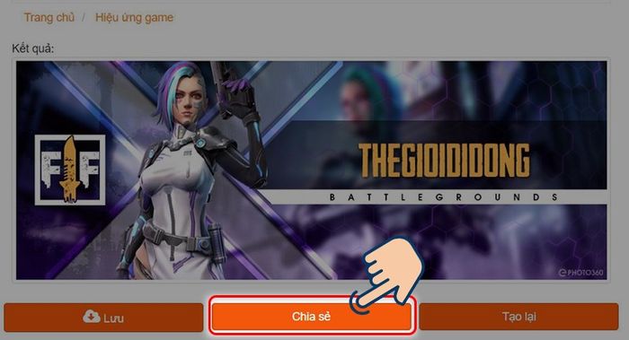Truy cập Ephoto360 Free Fire > Chọn nhân vật yêu thích > Nhập tên bạn muốn làm ảnh > Nhấn Tạo ảnh > Tải ảnh/chia sẻ ảnh.