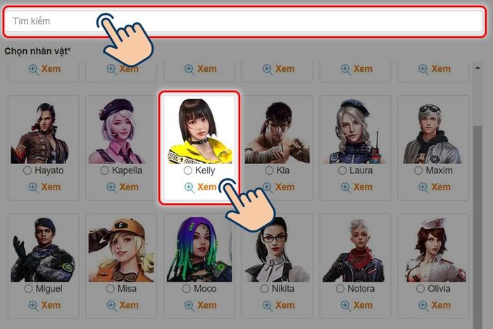 Bước 2: Tại đây, tìm kiếm nhân vật hoặc lựa chọn thủ công nhân vật yêu thích để tạo ảnh.